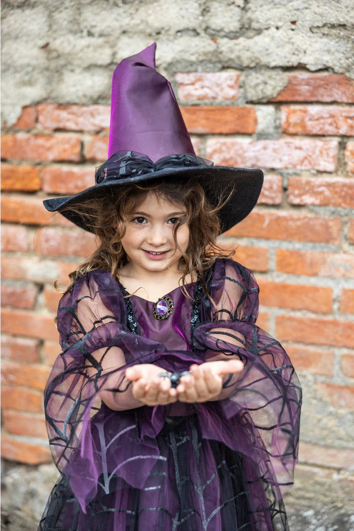 Kostim upotpunjuje šiljati šešir sa motivima pauka – idealan za bacanje čini i mešanje napitaka pod mesečevom svetlošću.