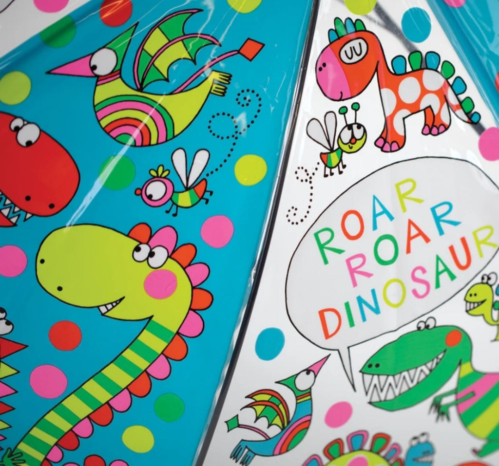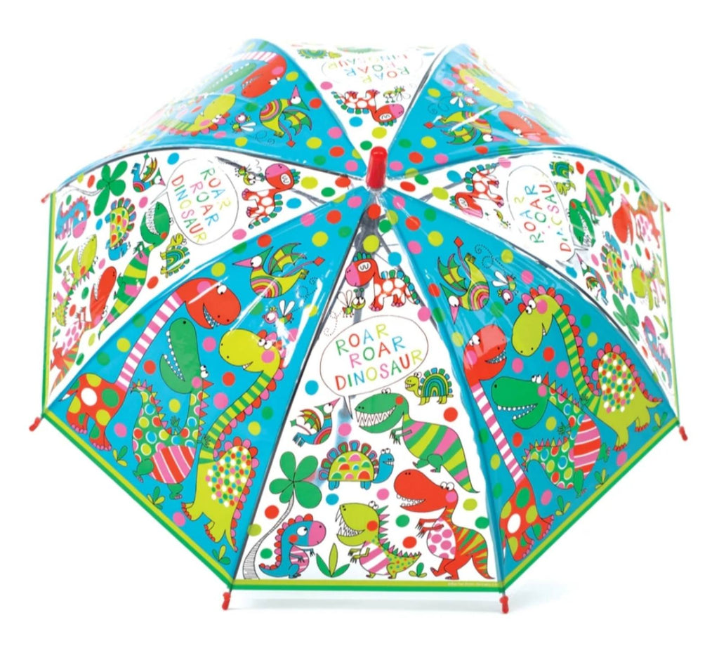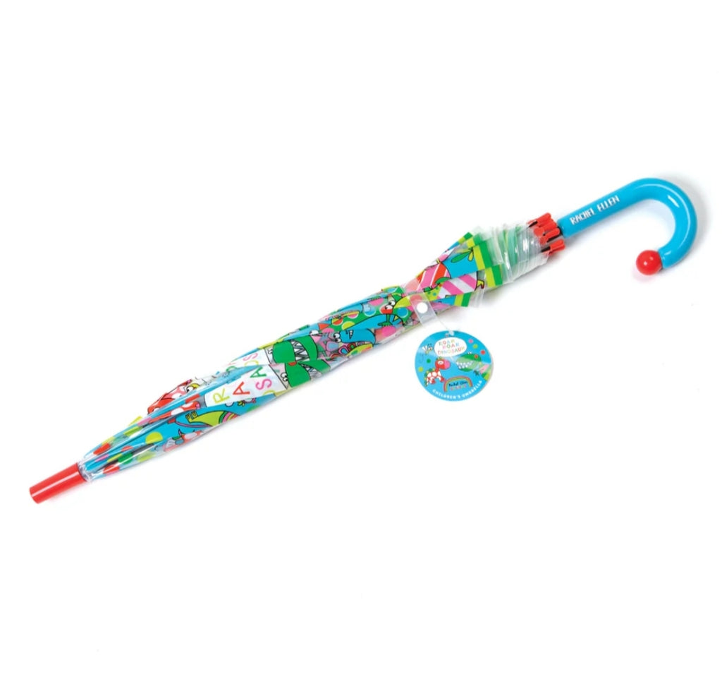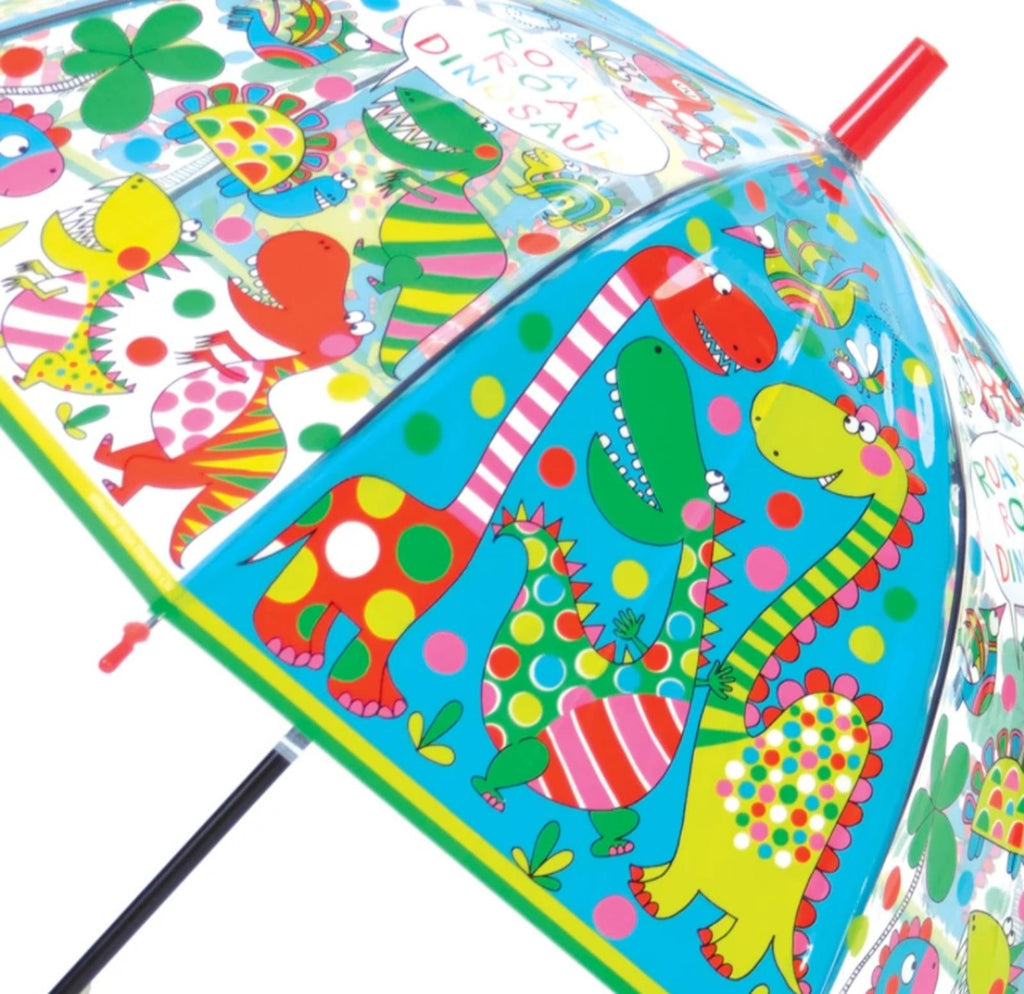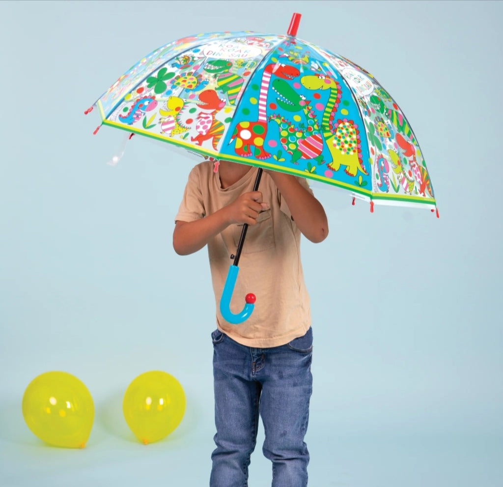 Sigurni smo da će deca obožavati naše Rachel Ellen šarene i prozirne kišobrane, toliko da neće želeti da izađu napolje osim ako ne pada kiša! Kišobrani su pogodni za decu stariju od 5 godina, a metalni okvir i kišobran u obliku kupole daje potpunu pokrivenost glave i ramena. Napravljeni su od ultra-izdržljivog providnog POE materijala, a plastična ručka jarkih boja zasigurno upotpunjuje izgled. Dezen ovog kišrobrana sadrži detalje razigranih dinosaurusa.