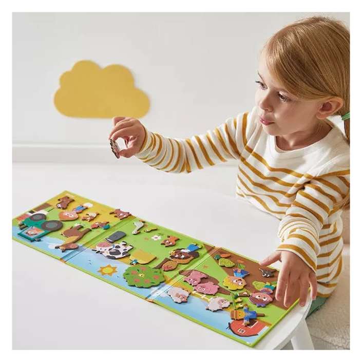 Svi mališani su pozvani su da posete farmu uz ovu ilustrovanu magnetnu pozadinu. Ova magnetna igra sastoji se od magnetne pozadine i 30 magneta. Fina motorika deteta, ključna za razvoj u ranom uzrastu, biće poboljšana dok bude hvatala i postavljala magnetne delove. A to je tek početak! Kada se magneti postave na prelepu scenu, mašta će preuzeti glavnu ulogu i kreiraće bezbroj priča.