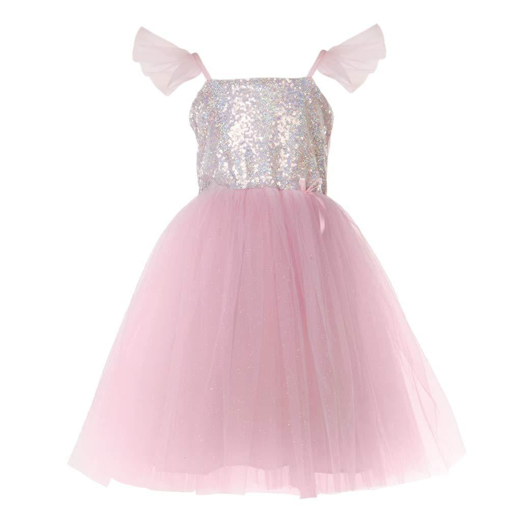 Budite savršena princeza u ovoj blistavoj ružičastoj tutu haljini. Suknja uključuje 2 sloja nežno ružičastog tila i sloj prelivajućeg tila sa šljokicama. Gornji deo je napravljen od prelivajućih šljokica sa mekom rastegljivom spandeks postavom. Bremeni su napravljeni od rastegljivog spandeksa i imaju pufne od tila. Mali detalj sa satenskom mašnom upotpunjuje ovu preslatku princezinu haljinu daškom elegancije.