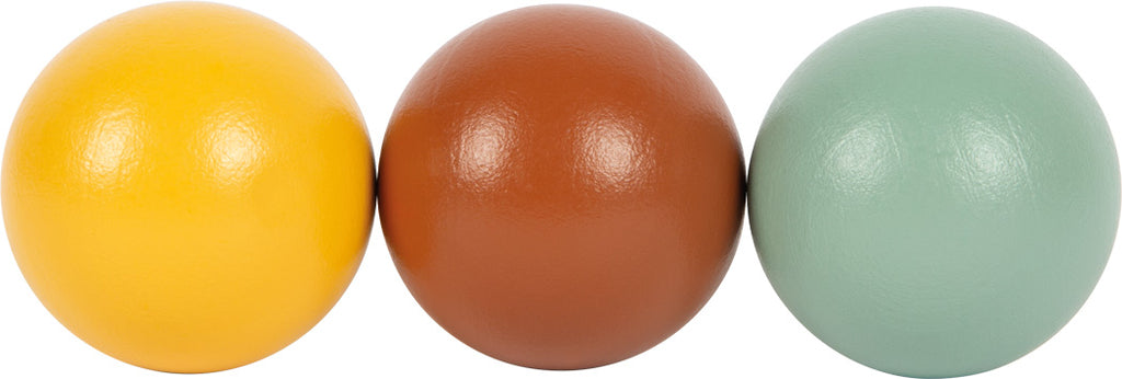 Ovaj jednostavan proces učenja je ključan za rani razvoj deteta. Tri drvene loptice su idealne veličine za male ruke, podstičući ciljano hvatanje, kontrolisano puštanje i koncentraciju.