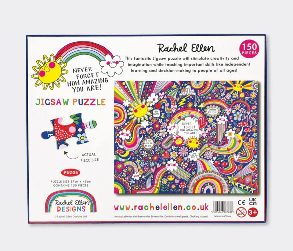 Živahna, inspirativna slagalica fantastičnog pozitivnog dizajna sa porukom koja afirmiše život: „Nikad ne zaboravi koliko si neverovatan/na!“. Pakovana u čvrstu kutiju sa odštampanim vizuelnim prikazom slagalice unutra, koja sadrži 150 delova.