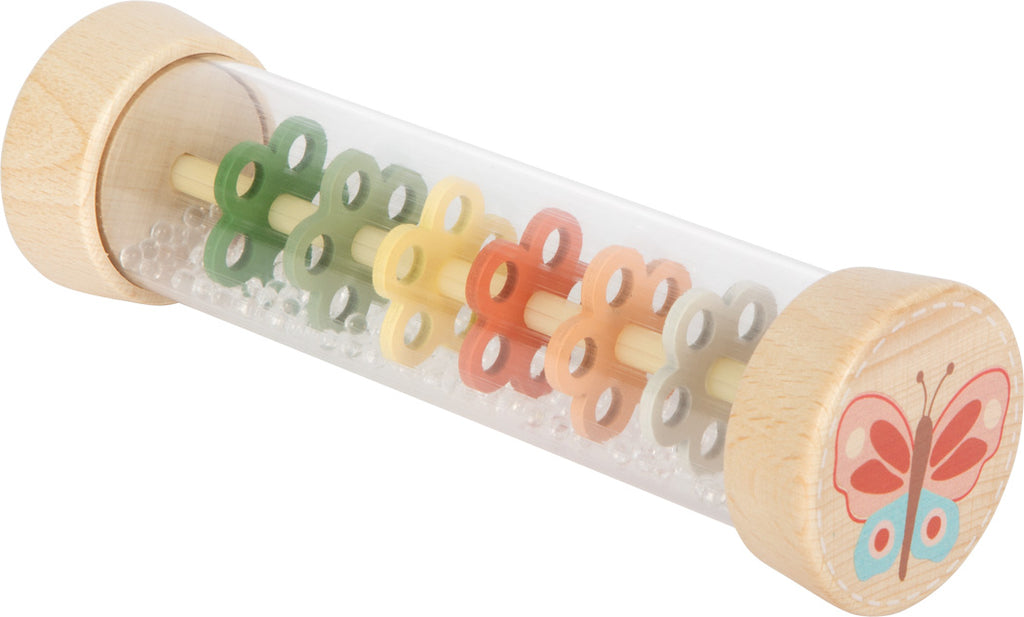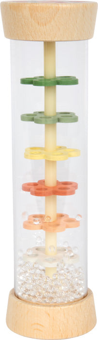 Rainmaker Little Friends donosi magiju kišnih kapi pravo u dečju sobu – vizuelno i zvučno! Sitne perlice u ovoj zvučnoj igrački stvaraju prijatan, nežan zvuk nalik kapljicama kiše dok klize kroz šest šarenih, perforiranih pločica u obliku cveća. Istovremeno, rainmaker je pravi multifunkcionalni saputnik: kao zvučna igračka, zvečka, ritmički instrument ili umirujuća senzorna igračka, prati bebe i mališane u svim vrstama igre. Zahvaljujući providnoj cevi, decu posebno očarava kretanje svetlucavih perlica – što direktno podstiče razvoj vizuelne percepcije. Ravnomerno „kapljanje“ perlica ima umirujući efekat, podstiče slušnu pažnju i ohrabruje decu da se opuste, osluškuju i imitiraju. Takođe pogodna za kotrljanje i zveckanje, čak i za najmlađe!