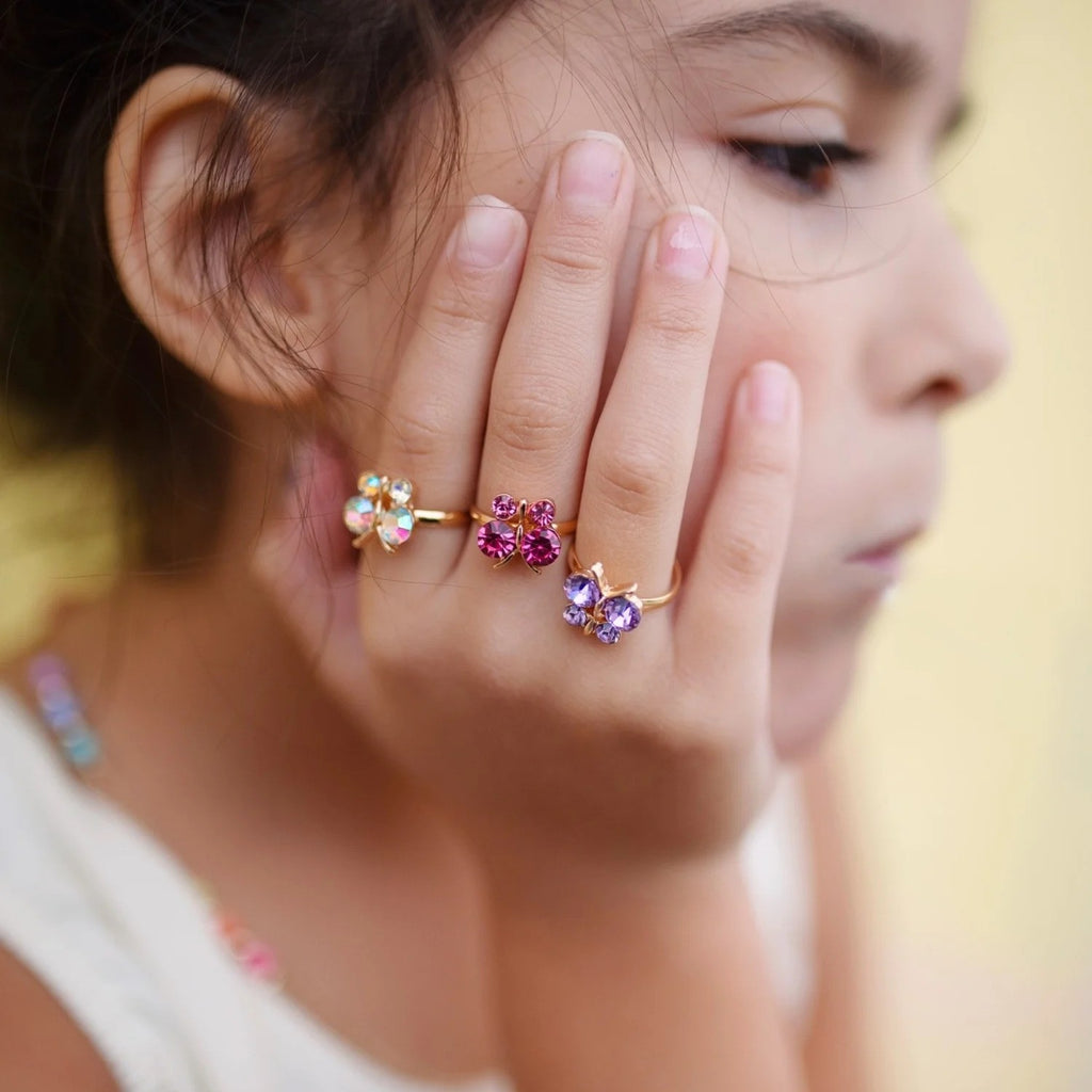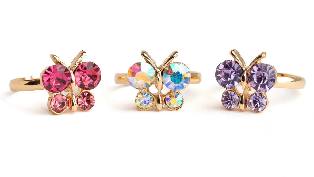 Ovaj set sadrži tri prstena sa šarenim, sjajnim kamenčićima i motivom leptira na zlatnoj, podesivoj bazi koja je prilagođena dečijim prstićima. Savršeni su za kombinovanje i maštovitu igru, jer se mogu nositi pojedinačno ili zajedno za još efektniji izgled. Idealan aksesoar za male ljubitelje nakita koji žele da dodaju dozu sjaja i razigranosti svom stilu.