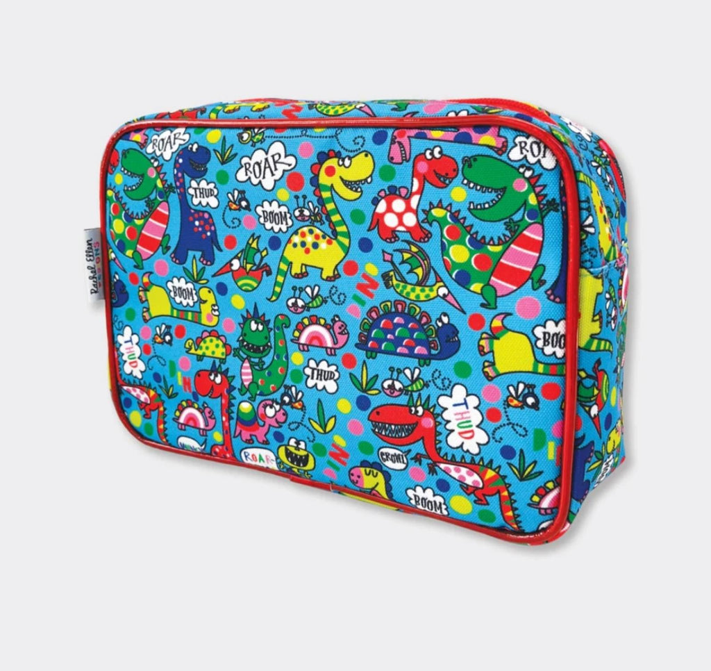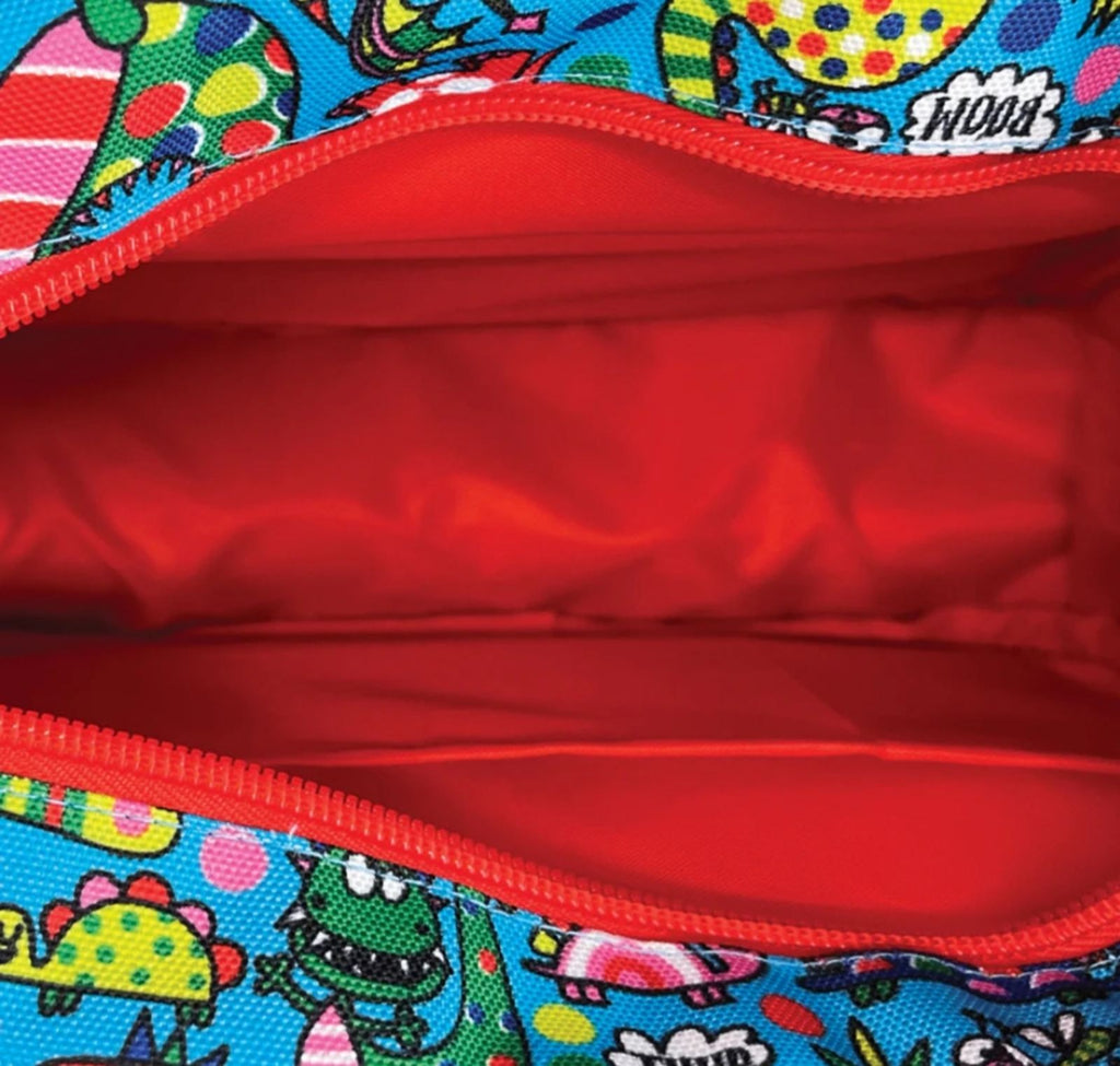 Napravljen od izdržljivog Oksford materijala, neseser sa dinosaurima oduševljava zabavnim i živopisnim printom po celoj površini, dok kontrastne metalik ivice i vezana etiketa sa logotipom dodaju poseban sjaj i detalj. Unutrašnjost je potpuno postavljena i opremljena džepom za lakše organizovanje sitnica, što ga čini praktičnim i funkcionalnim za sve male istraživače.