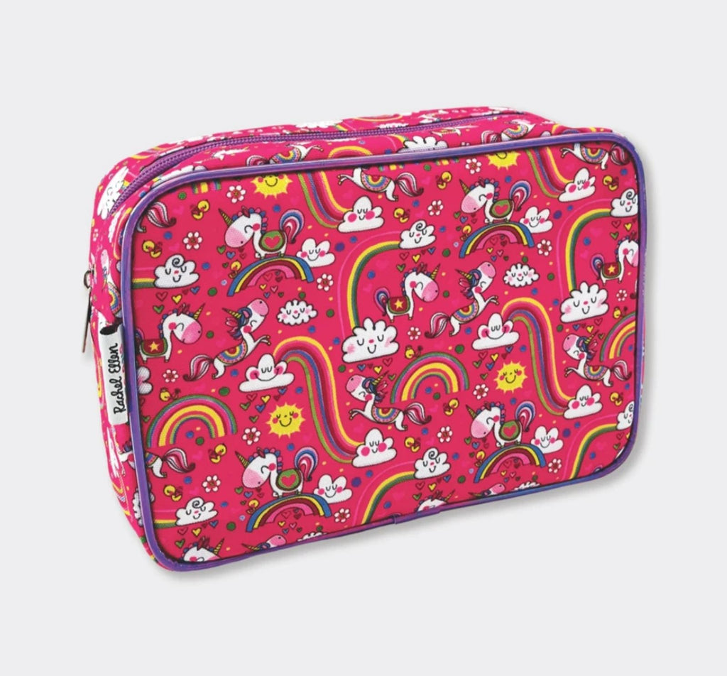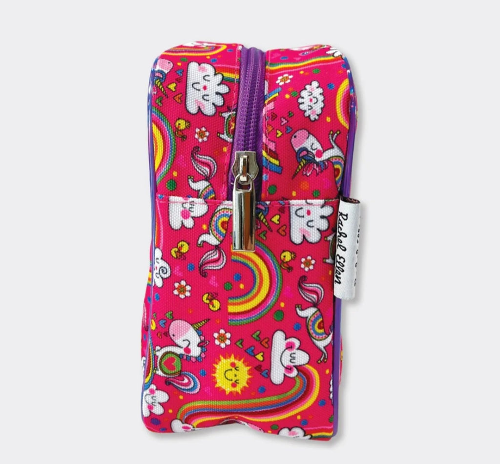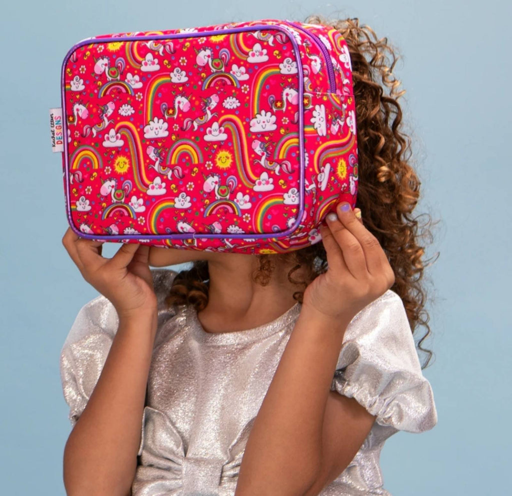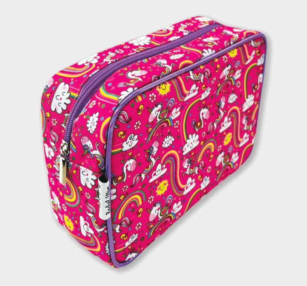 Napravljen od izdržljivog Oksford materijala, neseser sa jednorozima oduševljava zabavnim i živopisnim printom po celoj površini, dok kontrastne metalik ivice i vezana etiketa sa logotipom dodaju poseban sjaj i detalj. Unutrašnjost je potpuno postavljena i opremljena džepom za lakše organizovanje sitnica, što ga čini praktičnim i funkcionalnim za sve male istraživače
