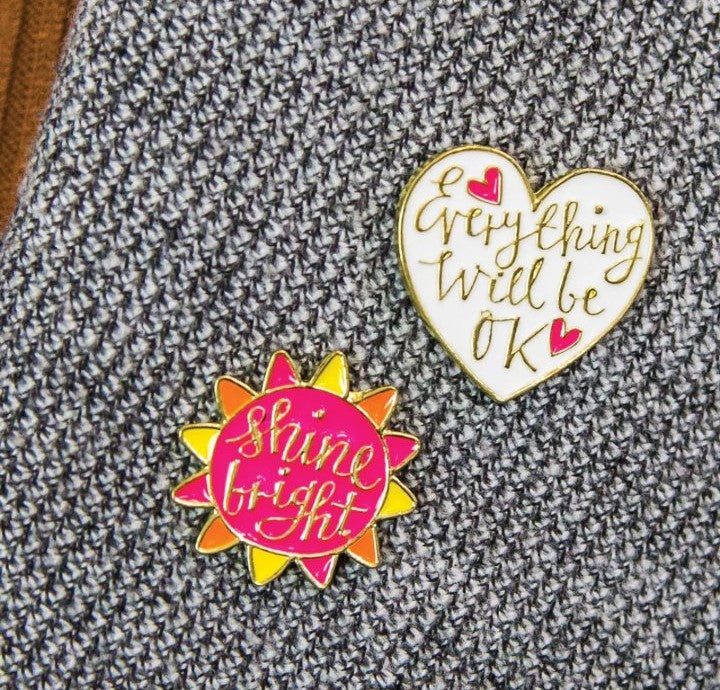 Ovaj prelepi, moderni set emajliranih znački sadrži dve izdržljive i identifikovane značke na živopisnoj ilustrovanoj podlozi u dizajnu „Sjajno i sve će biti u redu“. Sa dodatkom jarke neonske mastile! Idealno za ukrašavanje revera i torbi.
